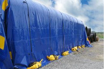 Тент – укрытие для труб «Панцирь» изготовлено из ПВХ ткани. Синтетическая ткань с двусторонним ПВХ покрытием. Ткань стойкая к ультрафиолетовому излучению, атмосферным осадкам. Укрытие устойчиво к действию масел, паров нефти и бензина.